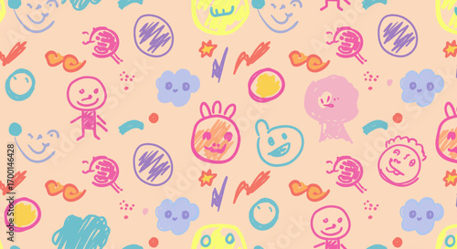 Whimsical hand-drawn pattern featuring cheerful doodles and playful illustrations