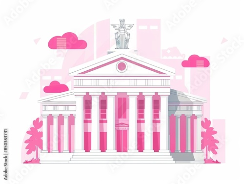 Whimsical Illustration of Greek Temple Amidst Clouds