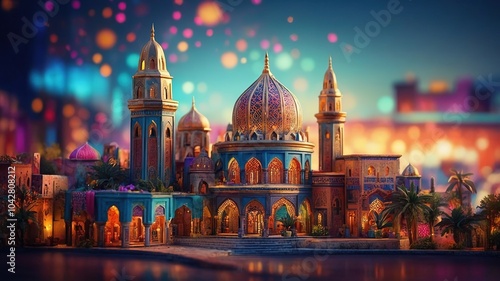 Whimsical Moroccan Cityscape with Bokeh Effect - 3D Rendering