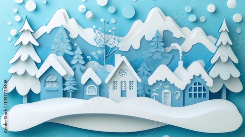 Whimsical Papercut Houses in a Snowy Village Scene