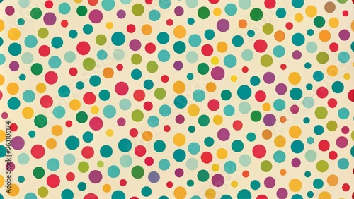 Whimsical polka dots in a kaleidoscope of colors sprawl across a light canvas, creating a lively atmosphere with