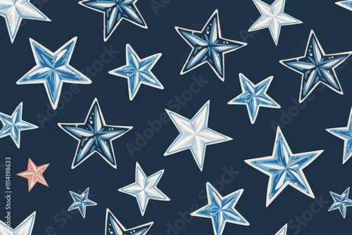 Whimsical Star Pattern Illustration Navy Background Holiday Cards