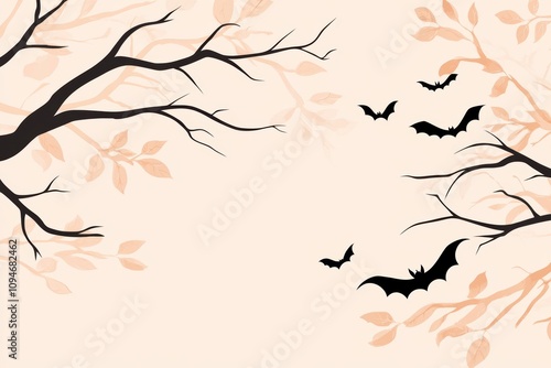 Whimsical Tree Under a Pastel Peach Sky with Bats and Witch Motifs - Chaos and Magic