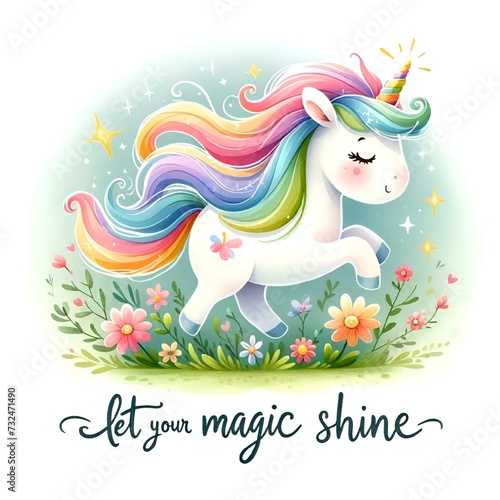 Whimsical Unicorn with Rainbow Mane in Watercolor Clipart Style. AI-generated