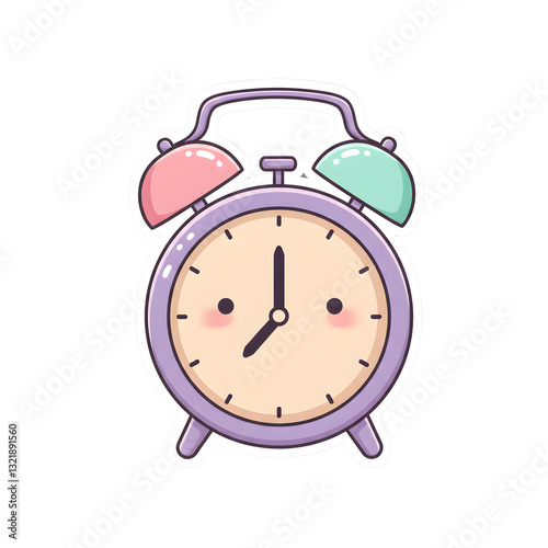 Whimsical Vintage Alarm Clock Illustration with a Sleepy Kawaii Style on Transparent Background