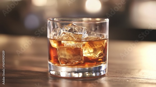 Whiskey glass with ice cubes