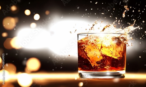 Whiskey splash, ice cubes