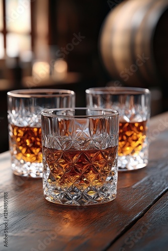 Whiskey Tasting Glasses with Barrel Peat and Barley Rustic Setup