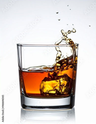 Whisky Splash in glass. isolate on white color, Clear light, studio shot.