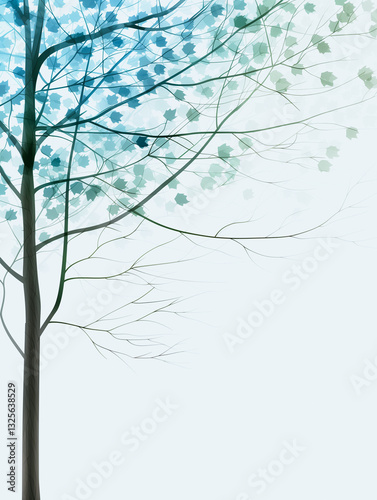 Whispers of Nature: Delicate branches reach towards the sky, adorned with ethereal leaves in soft shades of blue and green, evoking a sense of tranquility and artistic beauty.