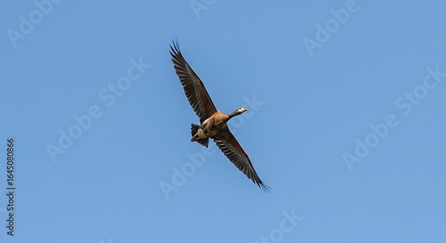 Whistling Duck Soaring Gracefully Across a Clear Blue Sky