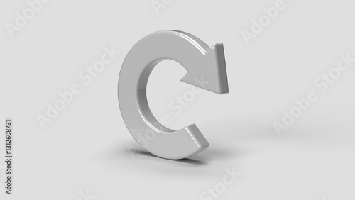 white 3D circular arrow icon on the white backdrop, left view