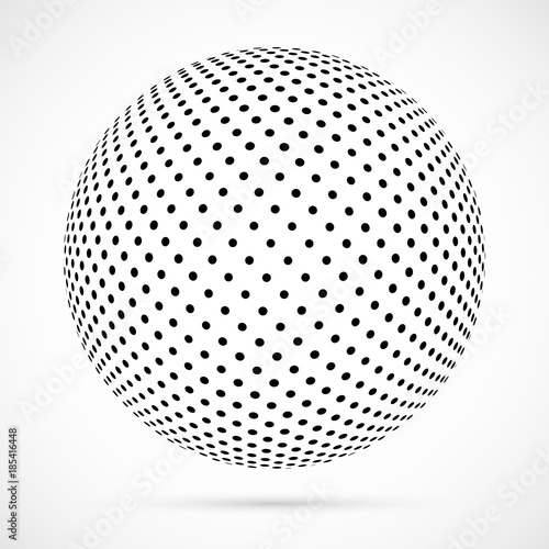 White 3D vector halftone sphere.Dotted spherical background.Logo template with shadow.Circle dots isolated on the white background.