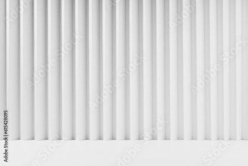 White abstract background of vertical folded striped pattern, perspective, floor as stage mockup for presentation cosmetic products, goods, advertising, design, elegant soft light modern urban style.