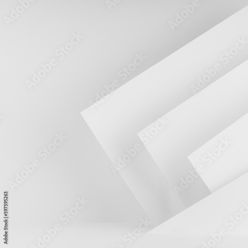 White abstract interior in modern geometric urban simple style with stripes and angles in soft light mockup for presentation cosmetic products, goods, design, copy space, square.