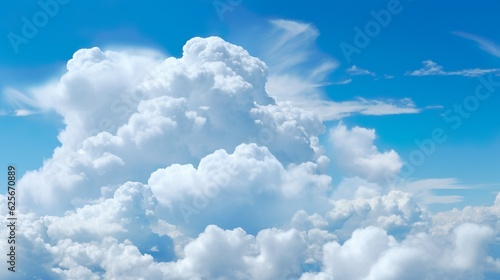 White aesthetic set isolated on a blue background. Render soft round cartoon fluffy clouds icon in the blue sky