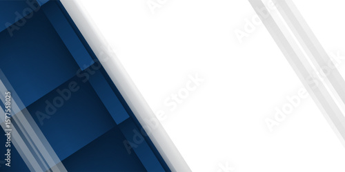 White and blue modern abstract wide banner with geometric shapes. Dark blue and white abstract background. Vector illustration