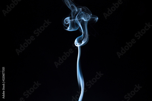 White and blue smoke on black background. Cigarette smoke.