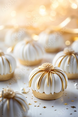White and gold colored luxury elegantly sweets for Christmas and cozy blur background