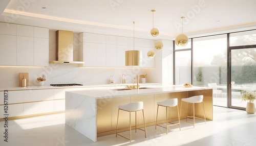 white and gold theme interior modern minimalism photo realism