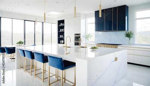 white and gold theme interior modern minimalism photo realism