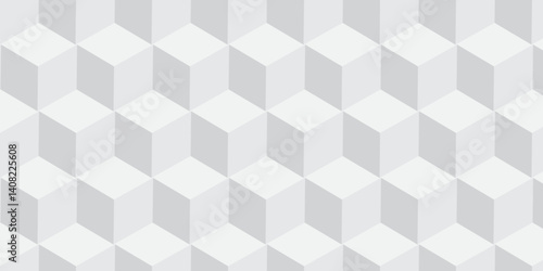 white and gray squares abstract cubic background. Seamless pattern with hexagon square cube geometric pattern.