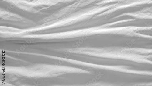 White and wrinkled bed sheet wave background. close up wave fabric.