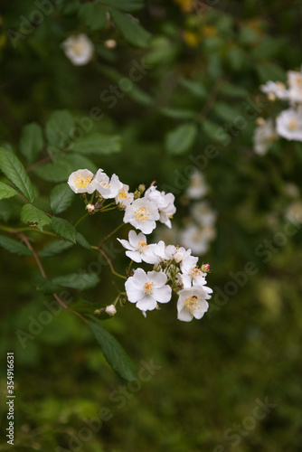 White and yellow flowers isolated with green leaves.