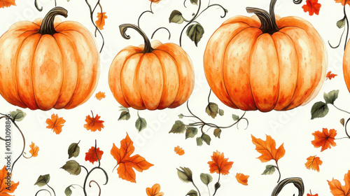 White and yellow pumpkins, orange leaves on white background. Autumn festival invitation