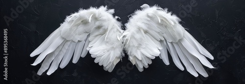 White angel wings on a black background ethereal beauty and grace captured in