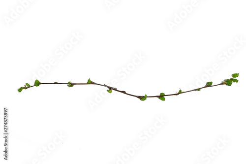 white background branches small leaves spring / isolated on white young branches with buds and leaves, spring frame