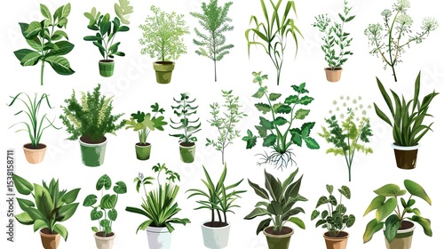 White Background Herbaceous and Floral Plants – a fresh and natural visual. The white background highlights the delicate details of herbaceous and floral plants, creating a clean and elegant botanical