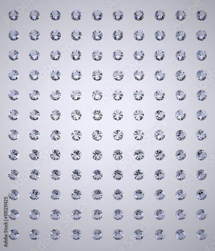 White Background with Brilliants. The Three-dimensional Brightly Lit Brilliants on a White background. Diamonds. Digitally Generated Image. Rendering in 3D Program