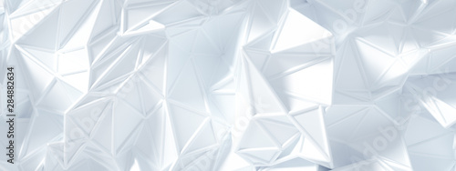 White background with crystals, triangles. 3d illustration, 3d rendering.