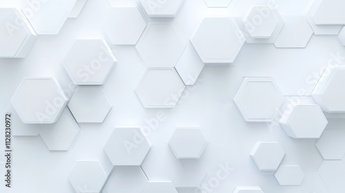 white background with hexagonal shapes in white tones. technological shapes. technology wallpaper