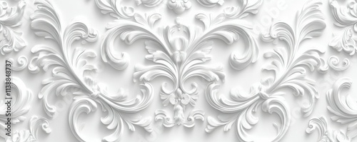 White Baroque Pattern Background. Elegant Light Decorative Wallpaper.