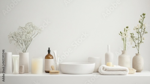 White Bathroom Countertop with Minimalist Decor and Accessories