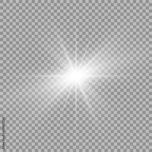 White beautiful light explodes with a transparent explosion. Vector, bright illustration for perfect effect with sparkles. Bright Star. Transparent shine of the gloss gradient, bright flash.