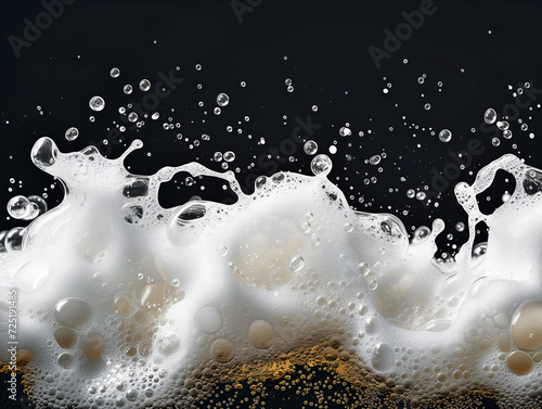 White beer foam on black on black background