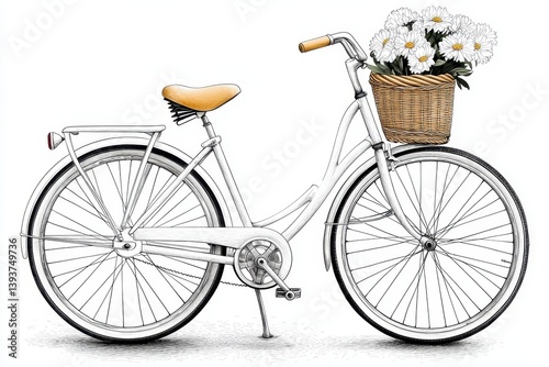 White Bicycle with Daisies in Wicker Basket