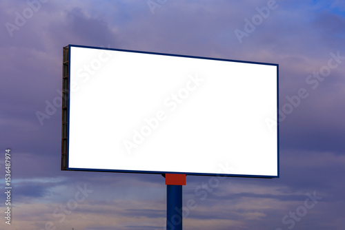 White billboard along the highway. Background for design and advertising.