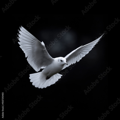 White bird soaring against dark background