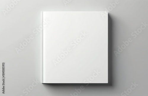 White blank book cover mockup on neutral background. Empty page template for design projects, print, or presentation needs. Clean space for text.