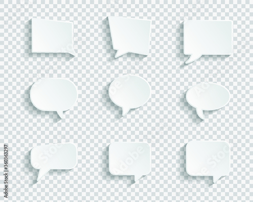 White blank speech bubbles isolated vector set. Infographic design thought bubble on the transparent background. Eps 10 vector file.