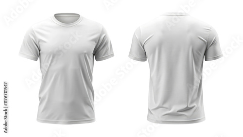 white blank t shirt round neck template from two sides isolated on transparent white background, clipping path