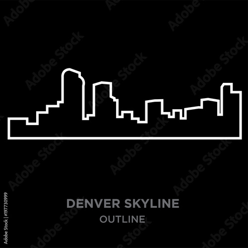white border denver skyline outline on black background, vector illustration