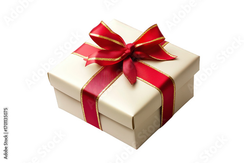 White box with a red ribbon tied around it