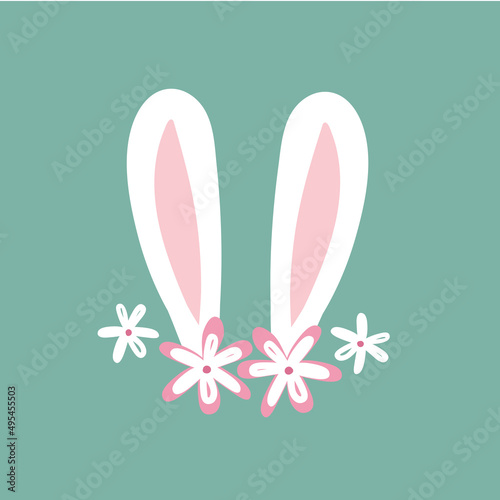 White bunny ears and daisy vector elements set. Simple Easter hand drawn illustration for nurcery, cards and web design.