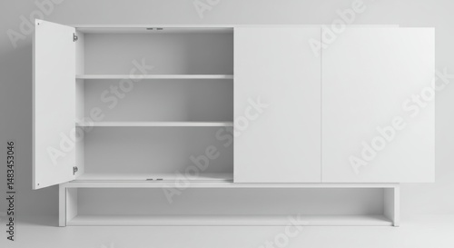 White cabinet illustrating interior design and storage solutions with open door and shelves