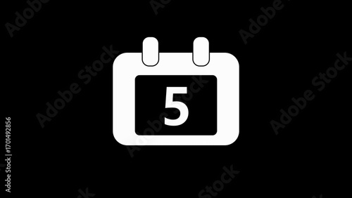 White calendar icon with the number 5 displayed on a black background five
